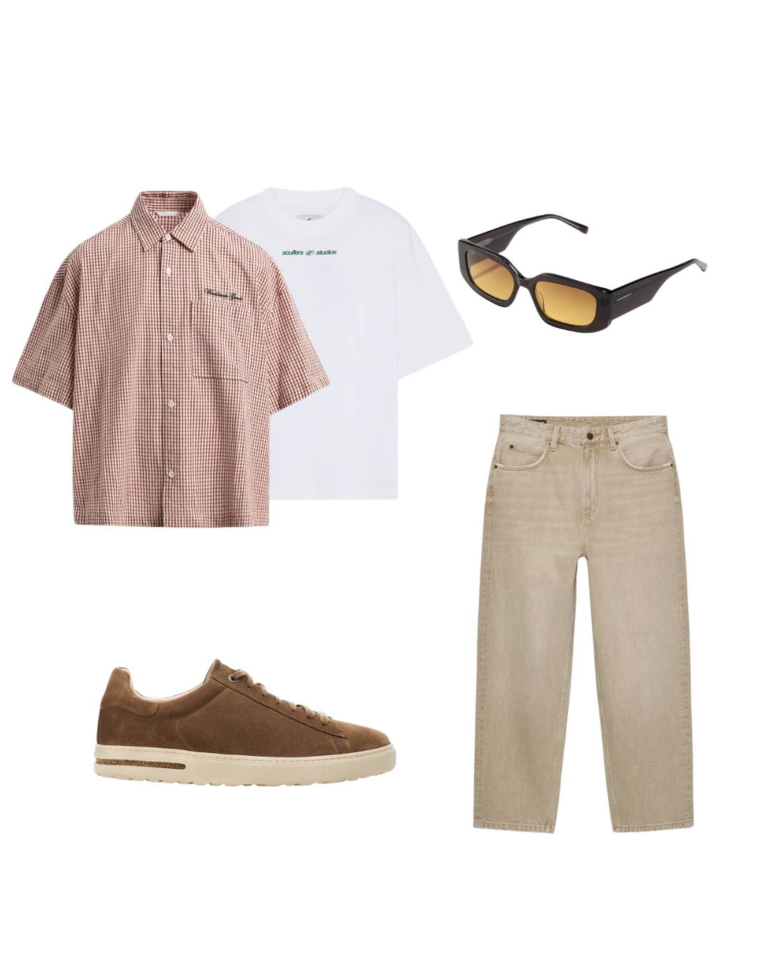 A relaxed outfit built around warm tones and balanced proportions.